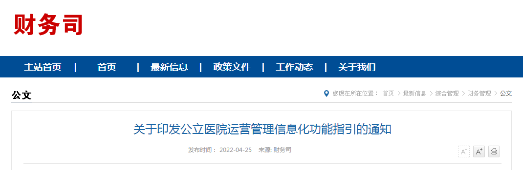 为健全公立医院运营管理体系,提高运营管理科学化、规范化、精细化、信息化水平,按照《国务院办公厅关于推动公立医院高质量发展的意见》《国务院办公厅关于建立现代医院管理制度的指导意见》以及《国家卫生健康委 国家中医药局关于加强公立医院运营管理的指导意见》有关要求,国家卫生健康委和国家中医药局立足公立医院运营管理的内涵,聚焦医院运营管理要求,面向数字化时代的发展,组织制定了《公立医院运营管理信息化功能指引》(以下简称《功能指引》),以引导各级各类公立医院运营管理信息化应用建设。